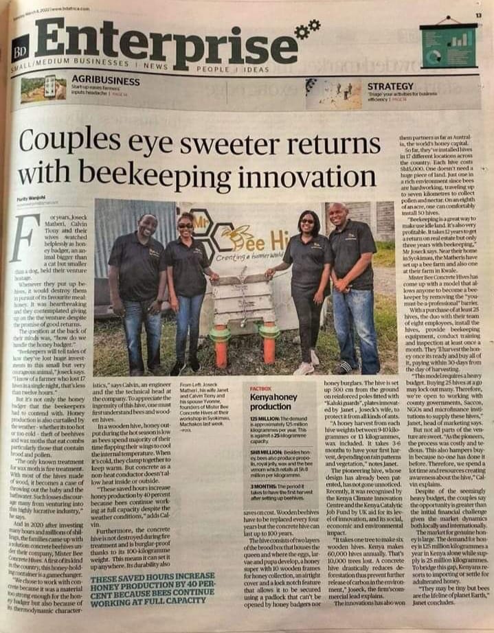 We aim to empower bee keepers in all the 290 constituencies in Kenya to produce enough honey for local and international demand.